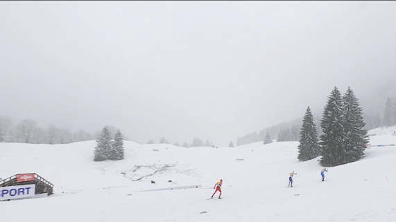 Большунов включился как сумасшедший на очень коварном спуске, но Клебо мгновенно перехватил инициативу, на следующем спуске встал первым и втопил на финальном подъеме!
