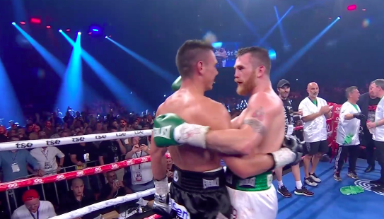 Деннис Хоган сразу же поздравляет соперника, едва придя в себя после финального избиения. Сколько неприятных слов было сказано австралийцем ирландского происхождения перед этим поединком, но теперь он демонстрирует только уважение.