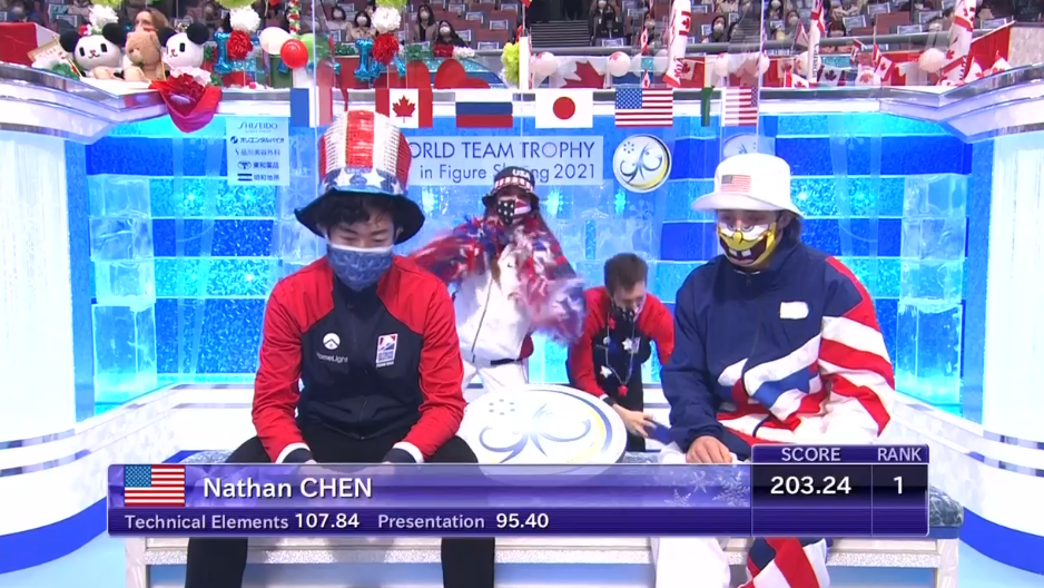 Юдзуру Ханю снова штормит, что не дает ему никаких шансов против Чена. 193,76 балла у японца и у американца, это два первых места. А Джейсон Браун, между прочим, выступил не лучшим образом и только восьмой результат показал. Таким образом, Коляда третий (огромный успех при таких соперниках), а Семененко — пятый.
