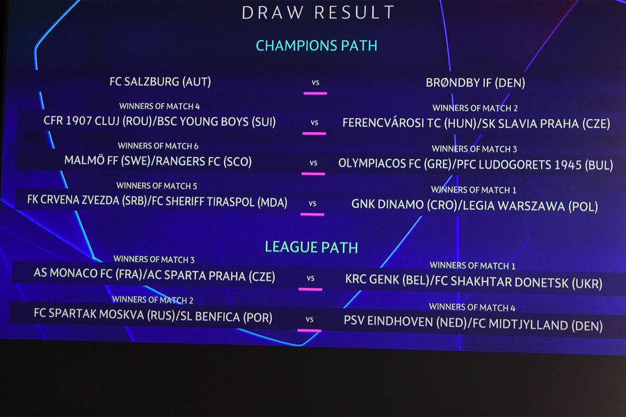 Пока определяются пары в так называемом «пути чемпионов» ЛЧ. Австрийский «Зальцбург» сыграет с датским «Брондбю».