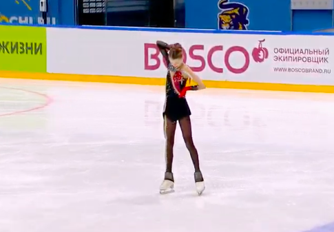 Филимонова исполнила сольный тройной флип и тройной тулуп, но оба раза явно недокручивала и с трудом выезжала с прыжков на дрожащих ногах. С таким же надрывом она исполнила каскад двойной аксель + ойлер + тройной сальхов.