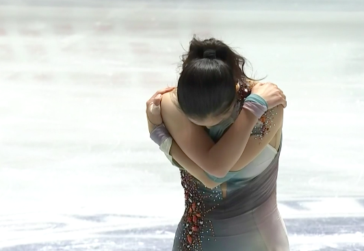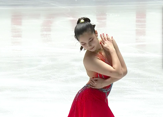 Сдержанное, холодное, но при этом прекрасное в своей мрачности выступление удалось Ю Ен. Она исполнила все вращения на максимальный, четвертый уровень, а дорожку шагов — на третий. Тем не менее кореянка недовольна собой из-за падения — даже слезы видны на глазах.