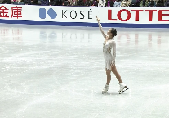 Есть аксель в три с половиной оборота! Причем Кавабе исполнила его с невероятной легкостью, а ведь это элемент ультра-си. Судьи накинули сверху еще два балла бонусами.