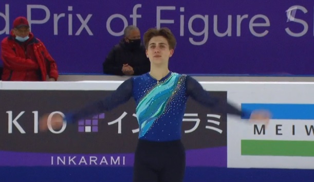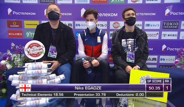 Нико Эгадзе из Грузии открывает соревнования. Для ученика Этери Тутберидзе это первый взрослый этап Гран-при.