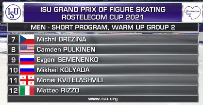 А теперь разминка второй группы фигуристов, где будут двое россиян. Причем, и Семененко, и Коляда претендуют на попадание в финал серии!