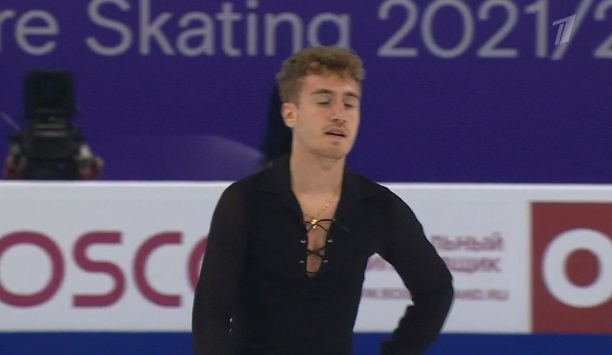 Сразу же серьезное падение на четверном тулупе, потом в каскаде с тройным лутцем сделал вторым прыжком тулуп лишь в два оборота. И во второй части проката тройной аксель с помаркой. Отвращался и отшагал на четвертый уровень. Тоже вряд ли может занести выступление себе в актив Риццо.