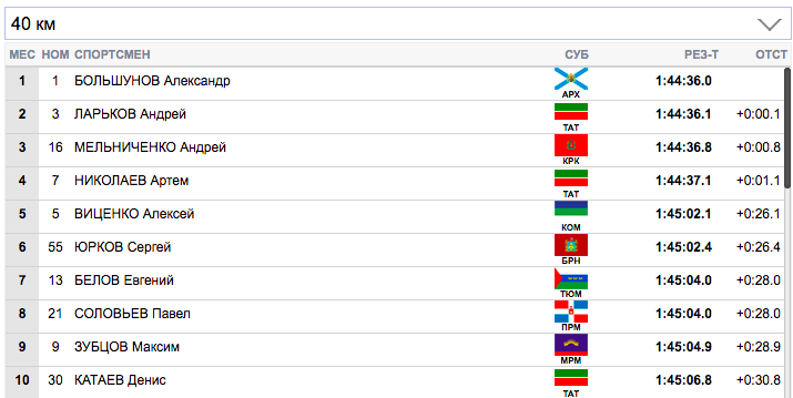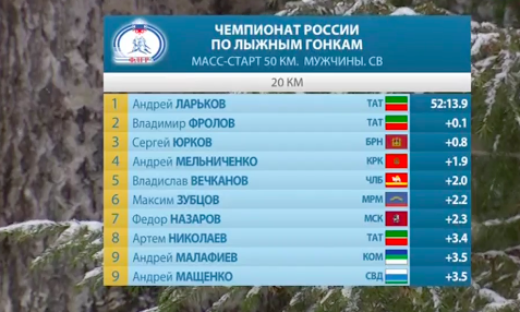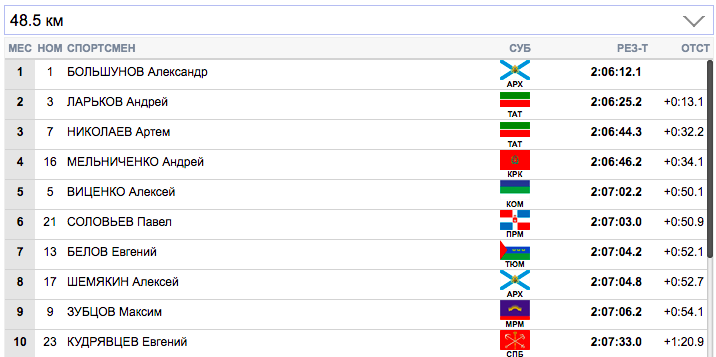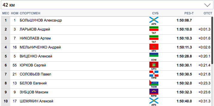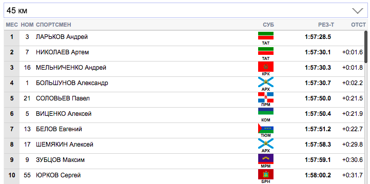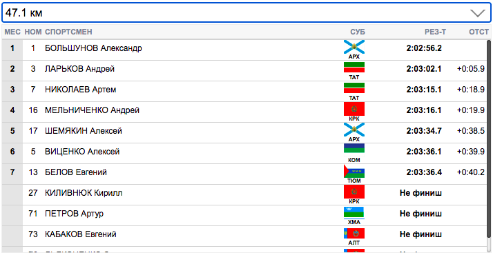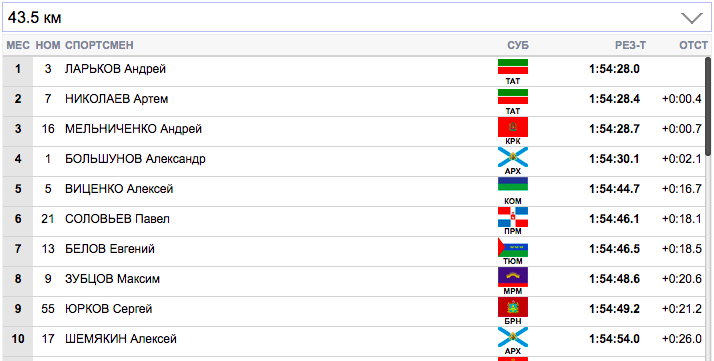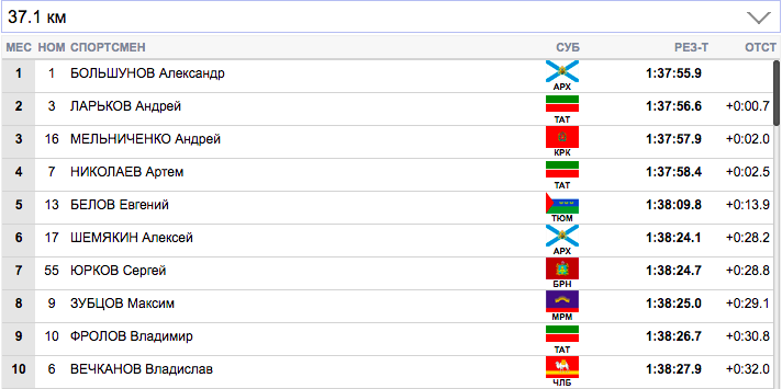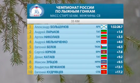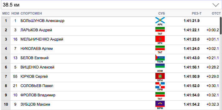Ларьков, кажется, бросил погоню за Большуновым и сосредоточился на том, чтобы не сжечь все силы и сохранить свою вторую позицию. Просвет между ними очень серьезный.