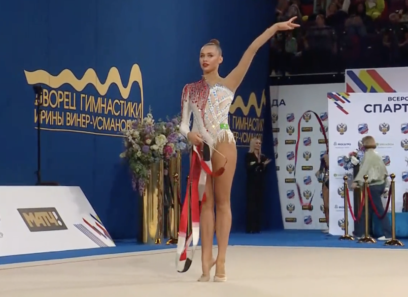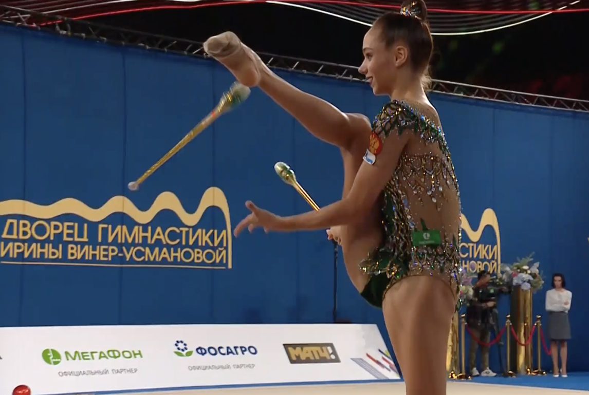 При всей грации и легкости, с которой Арина выполнила упражнение, заметен был диссонанс между выступлением спортсменки и музыкальным сопровождением — российской поп-песней.