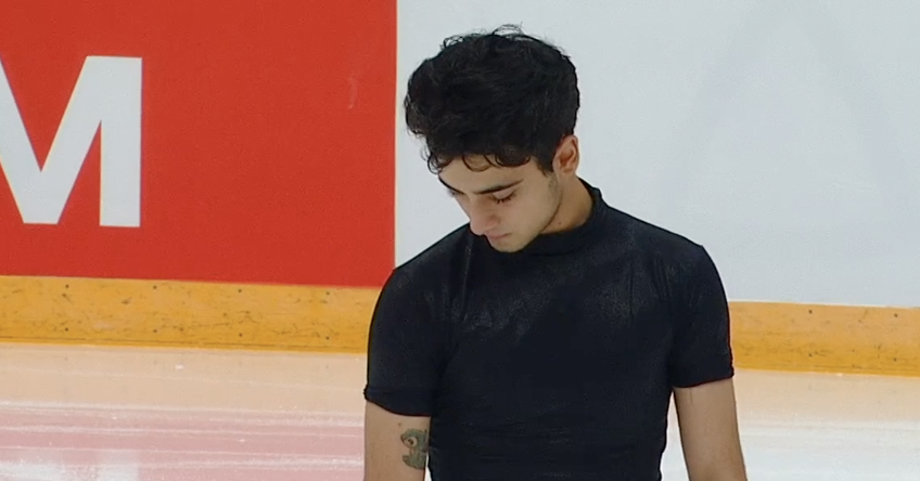 Алиев исполнил четверной сальхов, упал с четверного тулупа, сделал тройной аксель (коснулся льда рукой).