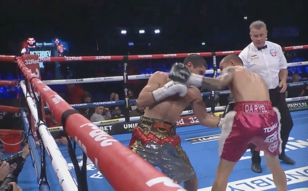 Жесткая рубка пошла во втором раунде! Неплохой левый боковой выдал Ярд, но затем Бетербиев ответил джебом и зажал в угол оппонента!