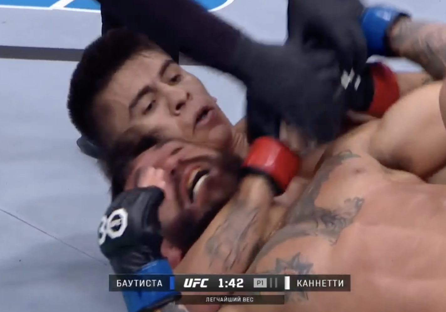 Вау, за 200 секунд все решилось! Сразу же Баутиста полез в борьбу, доминировал в партере от начала и до конца! Вырвался на исходе второй минуты Гвидо все же из тисков Марио, однако после броска через себя американец смог-таки взять на удушающий оппонента и досрочно завершить бой!