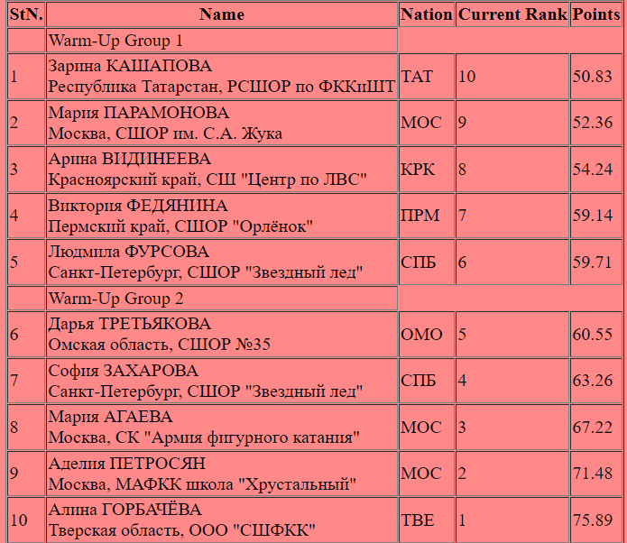 А вот так выглядит список женщин, которые в скором времени выйдут со своими произвольными программами на лед.