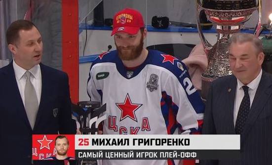 Самым ценным игроком плей-офф завершившегося сезона стал нападающий ЦСКА Михаил Григоренко!