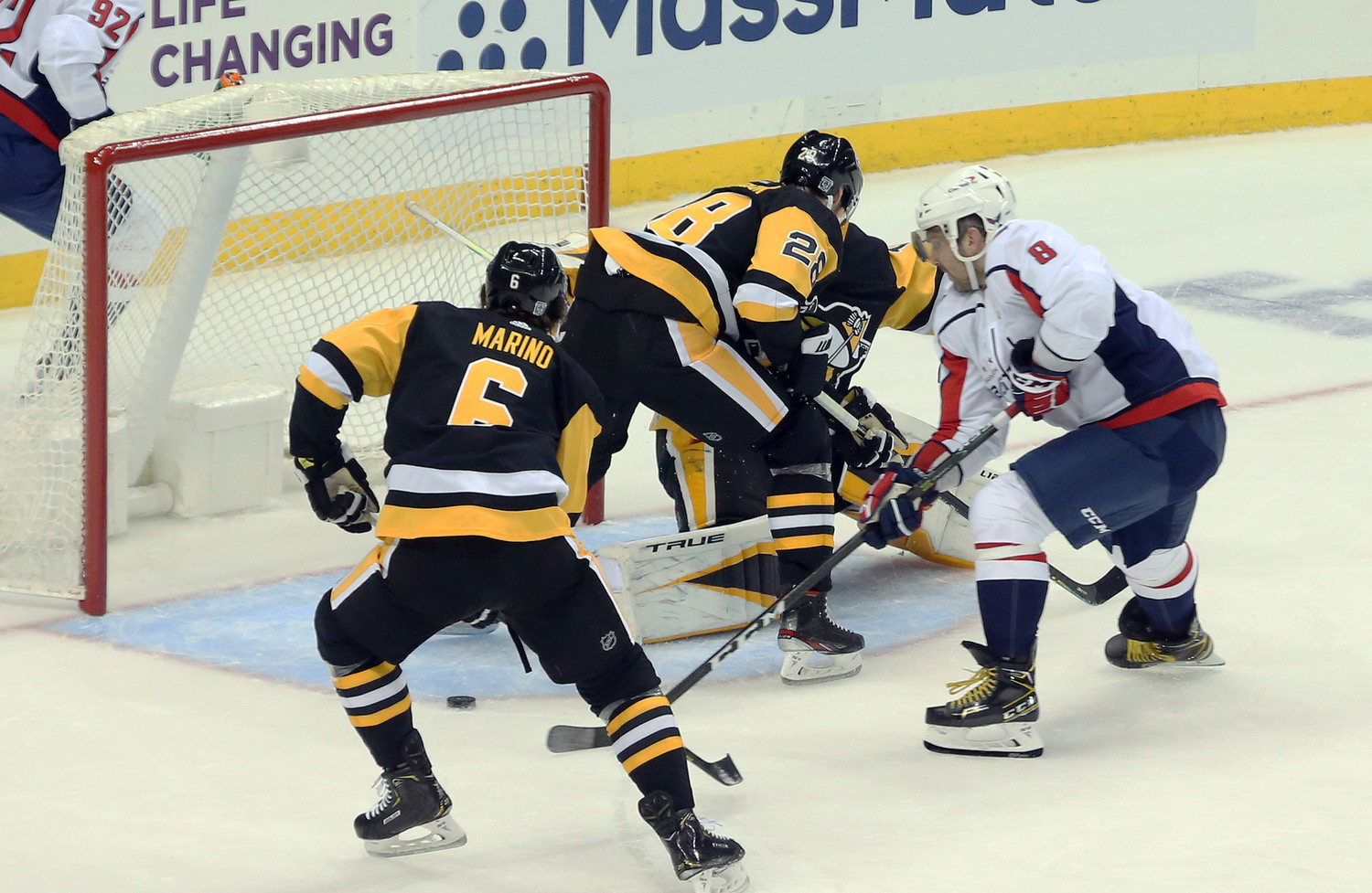 Овечкин пытался обыграть в чужой зоне и выйти на бросок, но не смог. Пошла контратака, в которой Ник Дженсен на встречном движении не по правилам сбил Маккэнна. Первое большинство «Питтсбурга».