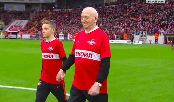 Первый, символический удар по мячу в сегодняшнем матче #СпартакКраснодар нанесли прославленный ветеран красно-белых Никита Павлович Симонян и 12-летний воспитанник спартаковской академии Игорь Родионов — тезка великого Игоря Нетто. #силавединстве #Нетто90 pic.twitter.com/B66PuxZQDz