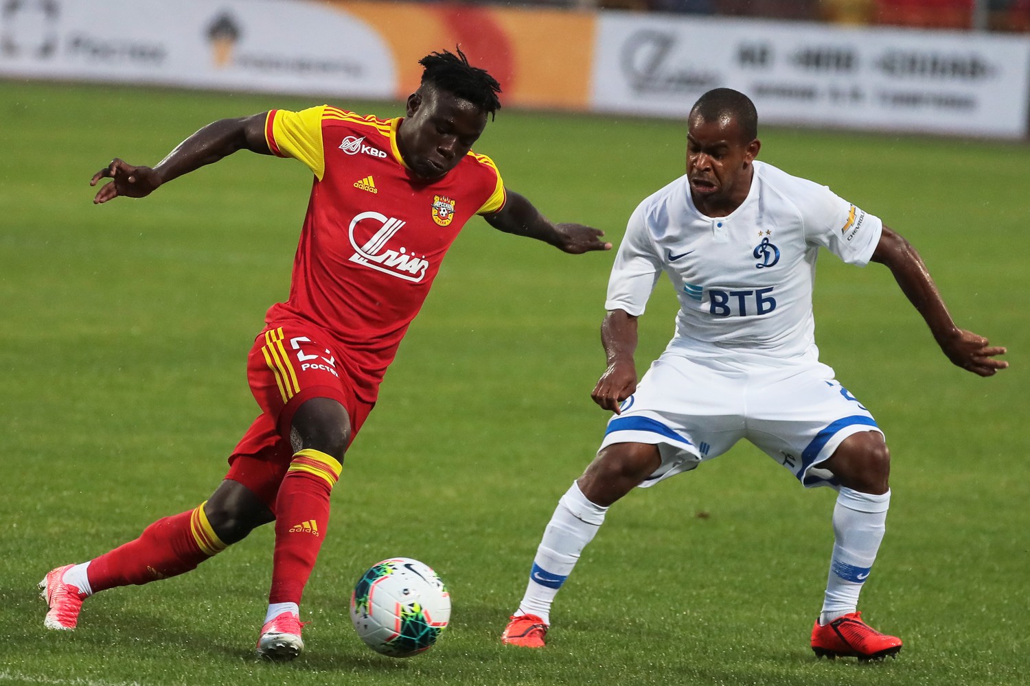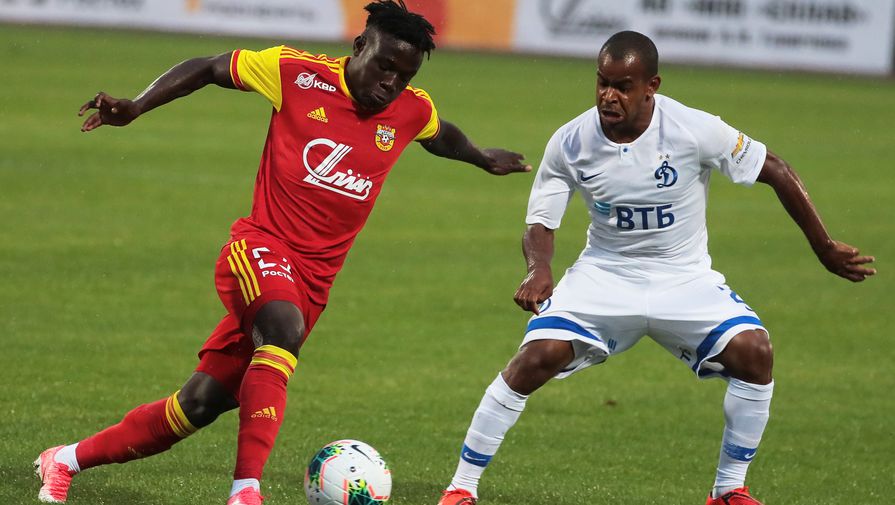 Динамовцы провели атаку левым флангом — Комбаров чётко сыграл на перехвате и помешал Игбуну принять мяч.