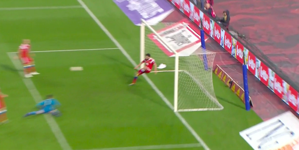 ГОЛ! Эден Азар развел Гилерме и мяч по разным углам. На последней минуте первого тайма «красные дьяволы» повели со счетом 2:1. Обидно...