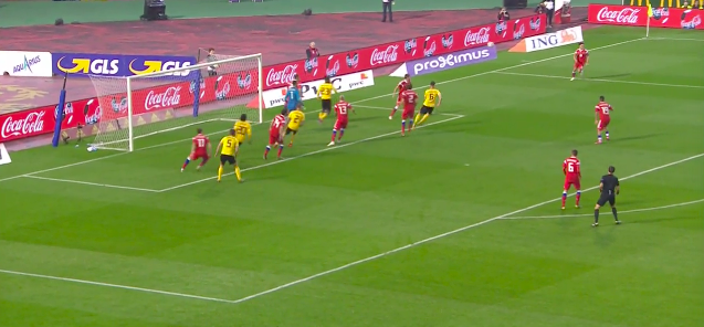 ГОООЛ!!!! Бельгия открывает счет — Тиллеманс безупречно вышел на ударную позицию и реализовал численное преимущество хозяев в атаке. «3 в 2» убежали бельгийцы и наказали подопечных Станислава Черчесова.
