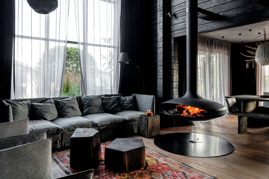 «Обращаясь к теме русской сказки, можно создать глубокий насыщенный интерьер, который в большей степени будет гармоничен именно в загородном доме, а не в городской квартире: темные пространства, обнаженная фактура старого дерева и шершавость льна, фрагменты орнаментов, неидеальность поверхностей, элементы ремесленного производства, собранные вокруг камина — в таком доме обостряются чувства, как в дремучем лесу или тихом омуте, в который так приятно провалиться и потерять счет времени в выходные», — рассказала Полина Цветкова.