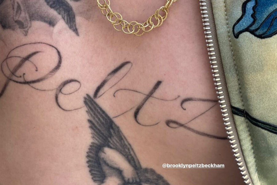 Старший сын Дэвида и Виктории Бекхэм, 23-летний Бруклин, набил на груди фамилию своей жены Николы Пельтц. Снимком с новой татуировкой мужа девушка похвасталась в социальных сетях.