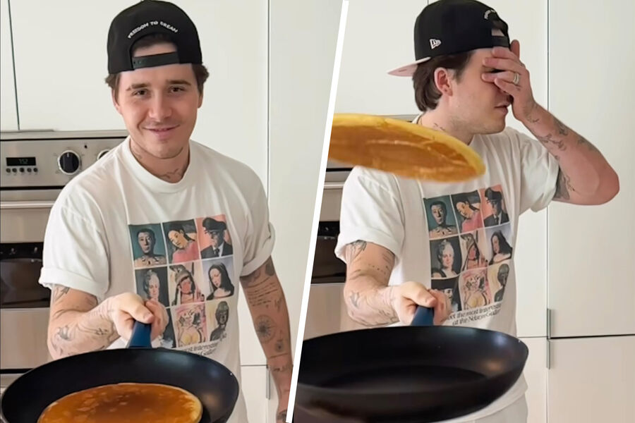 Позже старший сын Дэвида и Виктории Бекхэм Бруклин решил переплюнуть отца и показал, как делает то же самое с закрытыми глазами. Тогда Виктория пошутила, что только она одна не умеет готовить в их семье.