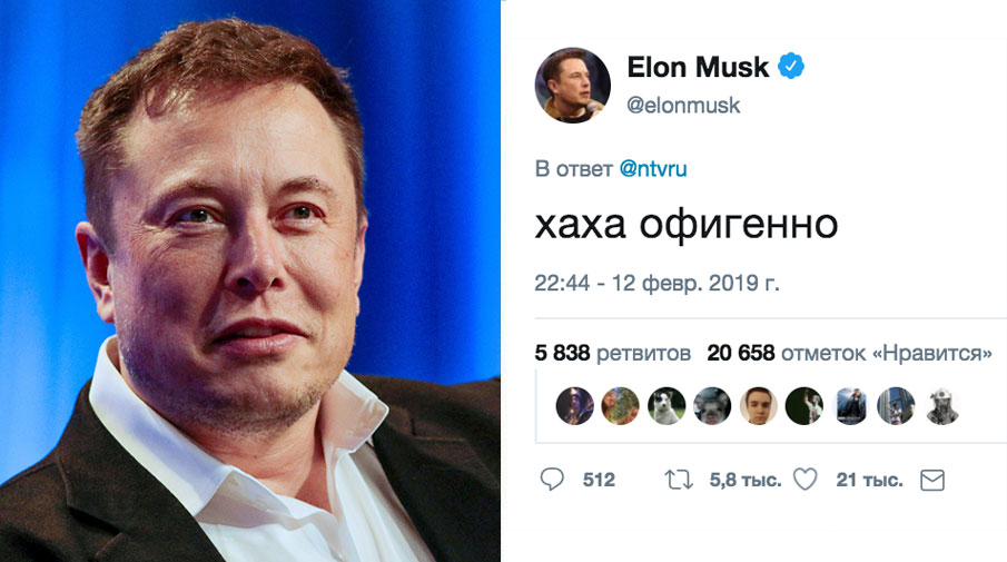 Сам Маск, который является активным пользователем Twitter, не замедлил отреагировать, прокомментировав запись на русском языке. «Хаха офигенно», — ответил инженер [орфография и пунктуация автора сохранены].
