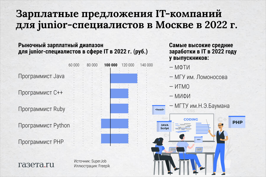 Самые высокие средние зарплаты в IT в 2022 году — у выпускников МФТИ, МГУ им. Ломоносова, ИТМО, МИФИ и МГТУ им. Н.Э.Баумана.