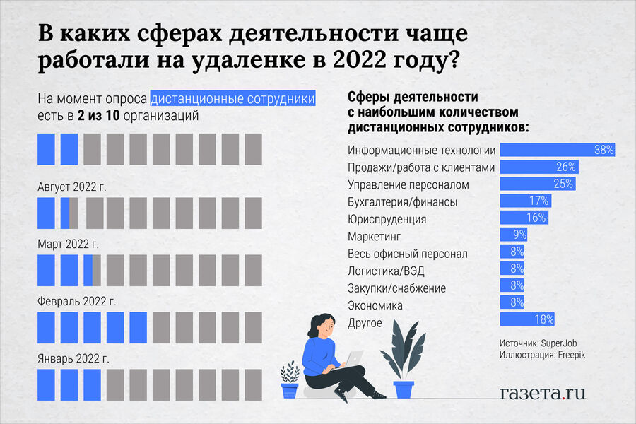 По словам Захарова, компании будут пытаться дополнительно мотивировать сотрудников, продолжающих находиться на удаленке. Он указал на то, что IT-отрасль привыкла к такому режиму работы еще до пандемии, и имеет опыт решения проблем в подобных обстоятельствах. Однако в текущих реалиях играет роль и отъезд многих профессионалов из страны. По данным главы Минцифры России Максута Шадаева, с начала 2022 года Россию покинули около 100 тыс. IT-специалистов.