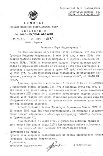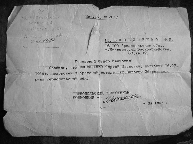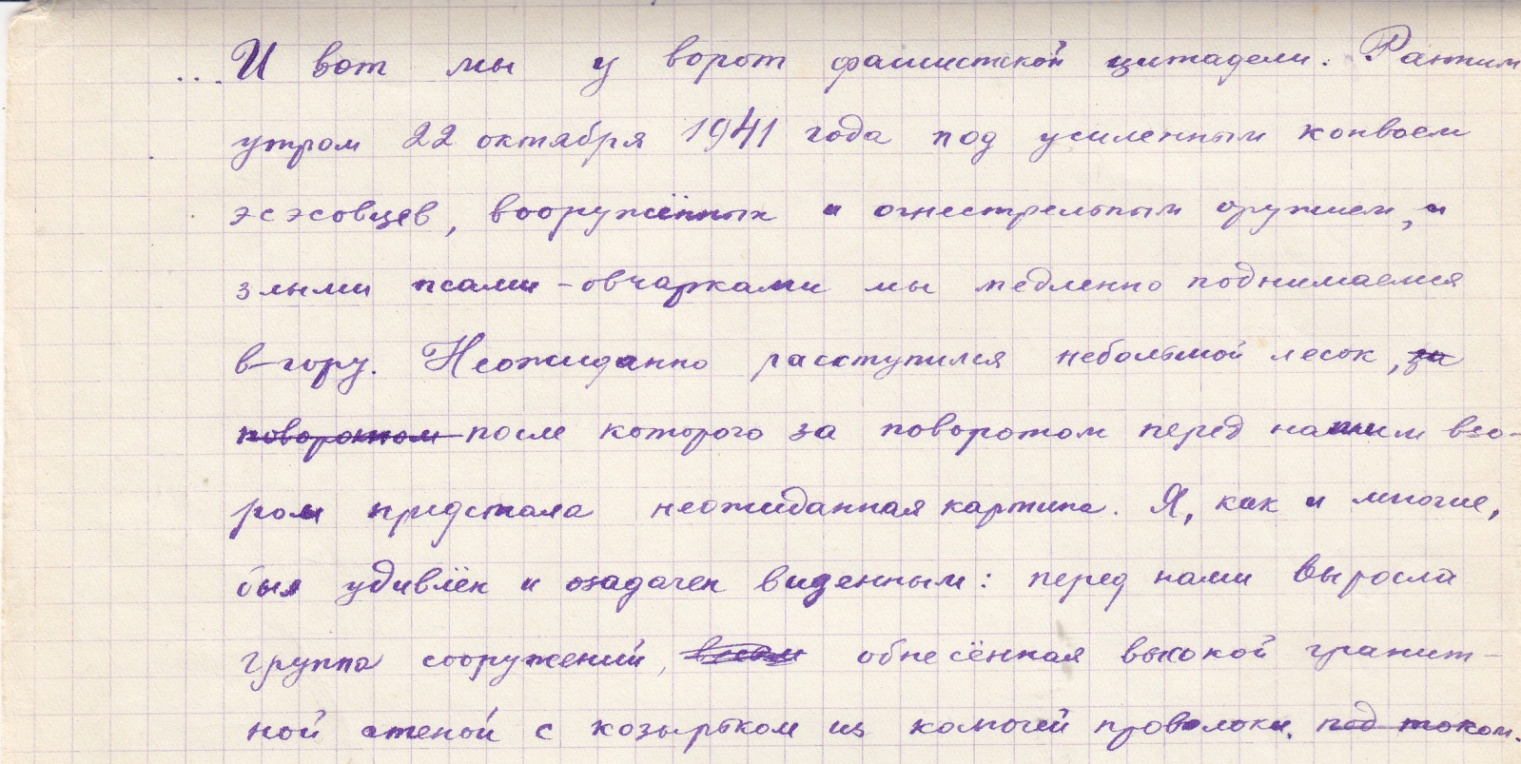 Вот так выяснение военной судьбы одного человека открыло для меня страшные страницы истории Великой Отечественной войны. Об этом я не читал в учебнике истории. Об ужасах плена рассказали М. Шолохов в «Судьбе человека» и К. Воробьев в повести «Это мы, Господи…». Но только непосредственное знакомство со свидетельствами прошлого заставили по-настоящему задуматься: почему так несправедливо мучеников плена считали предателями?
