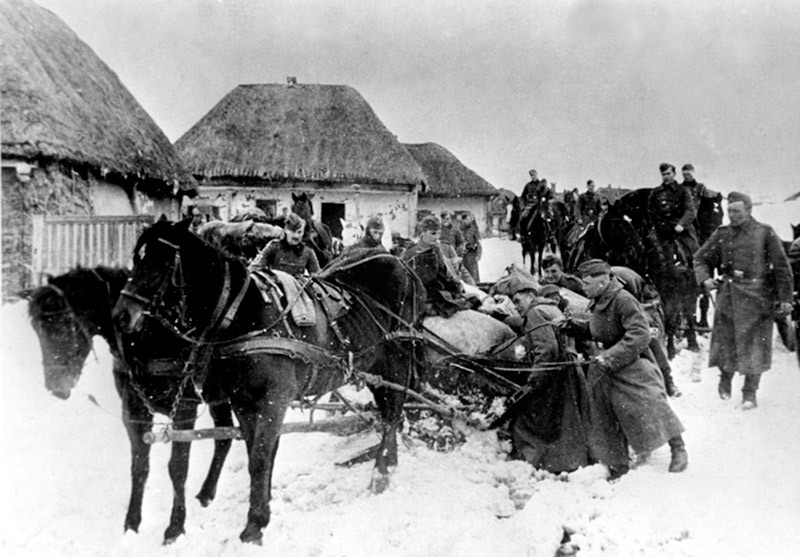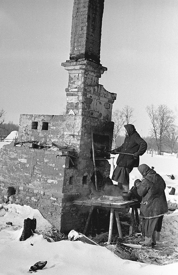 Из колхоза на изможденных, стареньких и не годных для армии лошаденках хлеб, лен и картошку везли в город Кашин на заготовительные пункты. Деревня Поповка стояла, да и до сих пор стоит, на трассе Кашин — Тверь. Вереницы груженых подвод из сел шли под транспарантами «Все для фронта!», «Все для Победы!». Зимой расчищали эту дорогу для прохода колонн военных автомобилей. Снегоочистительных машин тогда и в помине не было. Дорогу делили на участки и распределяли между бригадами. Молодые девчонки, подростки, женщины чистили ее вручную лопатами. Автомобили были крытые брезентом. Что в них перевозили, я не знаю. Иногда на постой распределяли военнослужащих водителей. Вечером проходил по деревне военный начальник колонны и мелом прямо на доме писал, сколько человек и из какой роты остановится на ночлег. По этой же дороге шли беженцы из Твери и из оккупированных районов. Шли семьями или небольшими группами. Зимой — голодные и грязные, в истрепанной и обветшалой одежде. Беженцы останавливались в деревне на ночлег. Иногда задерживались на несколько дней. Жители беженцам помогали как могли. Кормили, укладывали спать, мыли в бане, если была. Шура запомнила этих детей, ей их было очень жалко. Часто они были грязные, больные и вшивые.