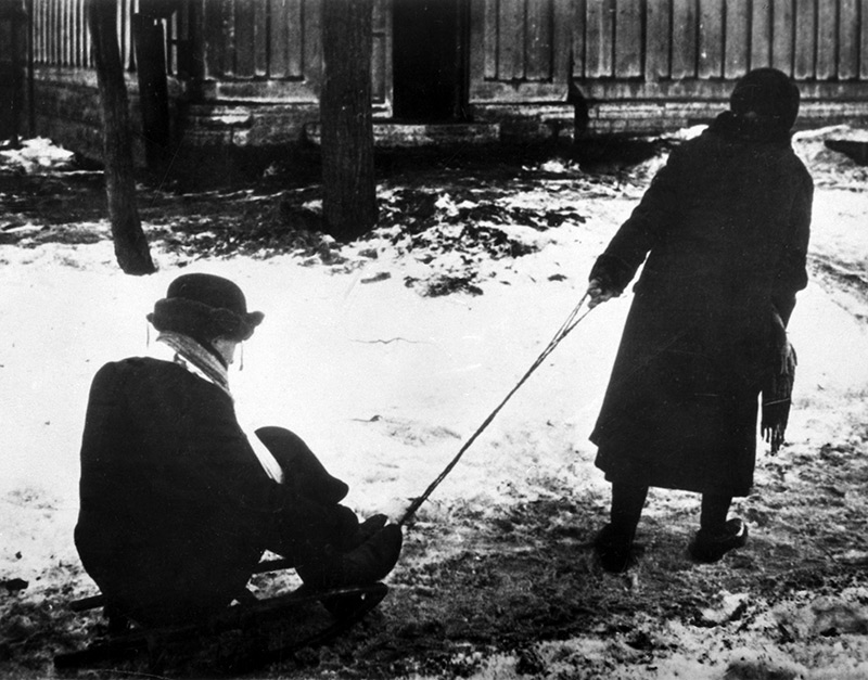 Объявили, что надо принести лыжи. А лыж ни у кого нет, только у мальчишек есть какие-то, похожие на доски. Вот они поехали, а нам учитель велел за ним ползти по-пластунски».