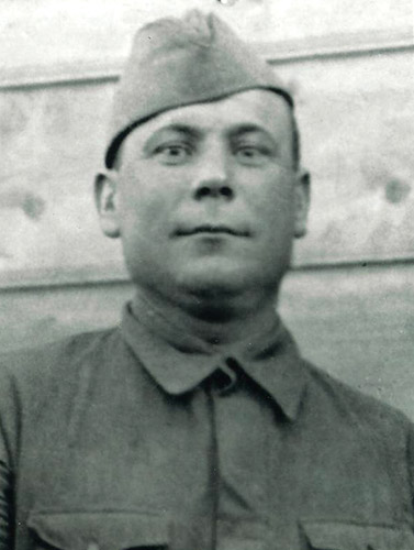 В августе 1943 года при формировании Воронежского фронта он записался в 293 стрелковый полк НКВД во внутренние войска, они пешком дошли до Киева, который и освободили 7 ноября 1943 года, а 8 ноября вошло и их подразделение. Хочется привести слова о том, что увидел мой прадед и все солдаты… «Что мы увидели в Киеве, не поддаётся описанию: убитые люди, лошади, убитая техника, разрушенный центр города — Крещатик. Здесь было неспокойно. Немцы неохотно оставляли Киев, а вместе с немцами появились ещё одни враги — националисты-бандеровцы.» <...>