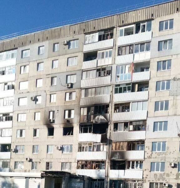 В результате атаки повреждены квартиры в жилых многоэтажках, в некоторых местах произошли возгорания.