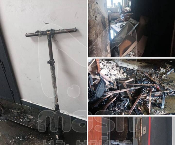 «Остались угольные руины»: самокат петербуржца вспыхнул в коридоре жилого дома