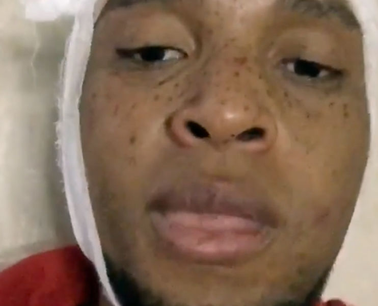 На кадрах видно, что у него была рассечена кожа на голове в нескольких местах.