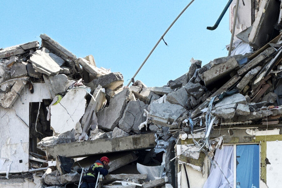 По его словам, специалисты работают на обрушившихся верхних этажах пятого подъезда, где разрушения затронули уровни с седьмого по десятый этаж.