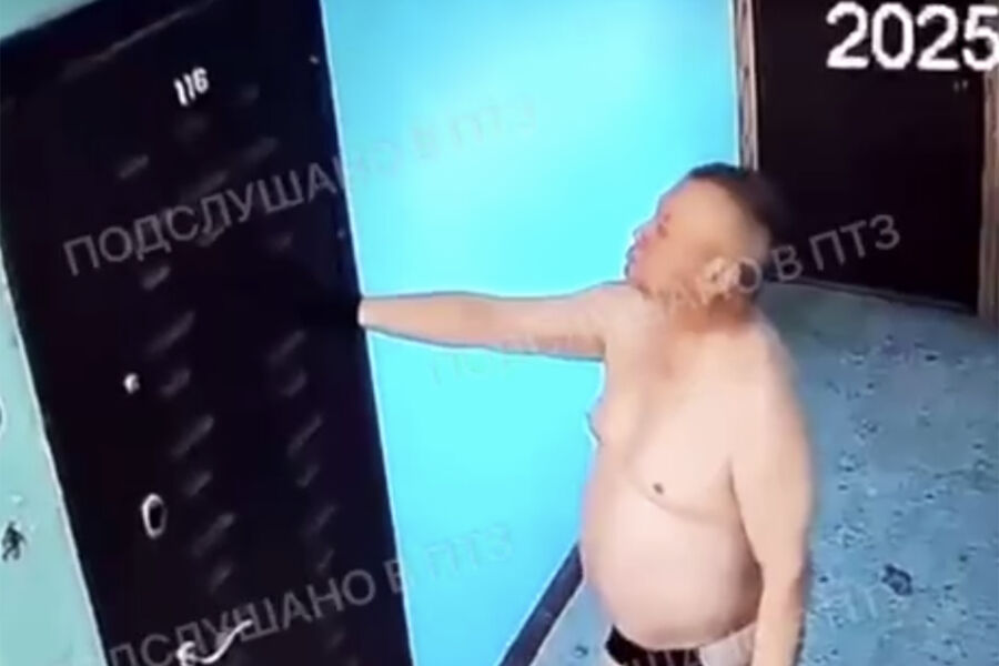 Инцидент произошел в жилом доме в районе Древлянка в Петрозаводске. На видеозаписях видно, как мужчина в одних трусах, вооруженный ножом, выкрикивает нечленораздельные звуки, дергает ручку чужой двери и наносит по ней удары кулаком.