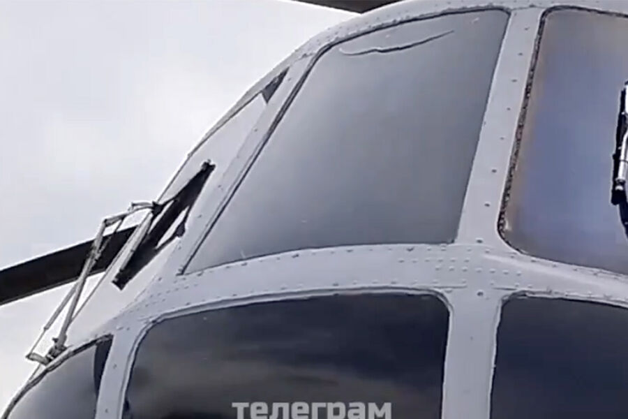 Публикация дополнена кадрами, на которых можно увидеть поврежденный вертолет. У воздушного судна пробито окно, на его корпус нанесены царапины.