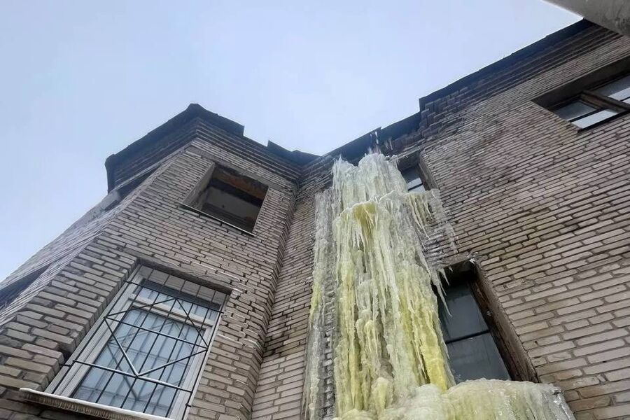 В Барнауле на аварийном доме образовался гигантский «ледяной водопад»