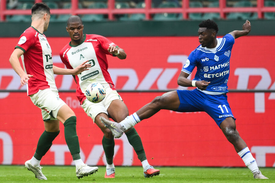 Аззи пошел развивать атаку по правому флангу, но защитник «Локомотива» вынес мяч за боковую и прервал продвижение алжирского футболиста «Динамо».