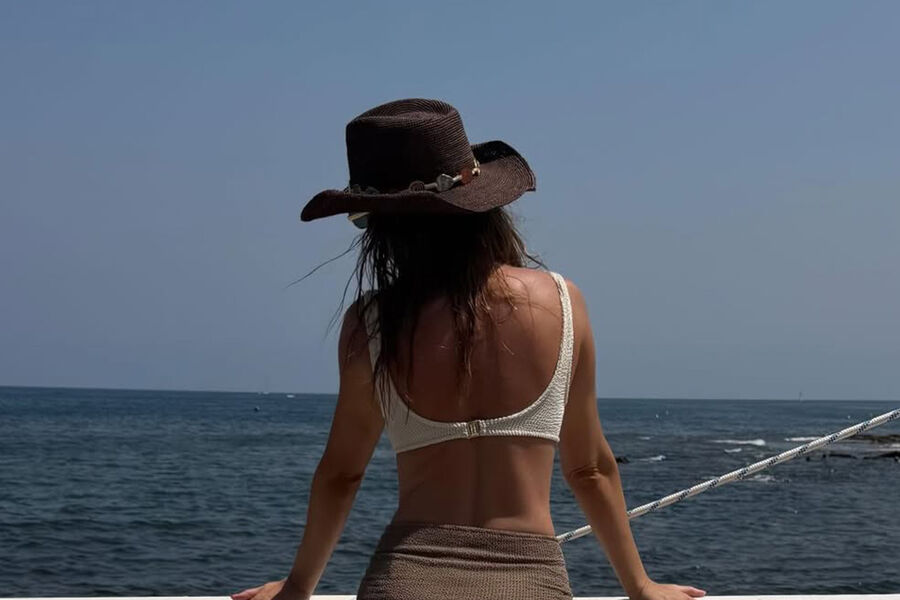 43-летняя Наталья Подольская позировала в коричневой мини-юбке, белом купальнике и соломенной шляпе. Волосы она распустила и отказалась от макияжа.