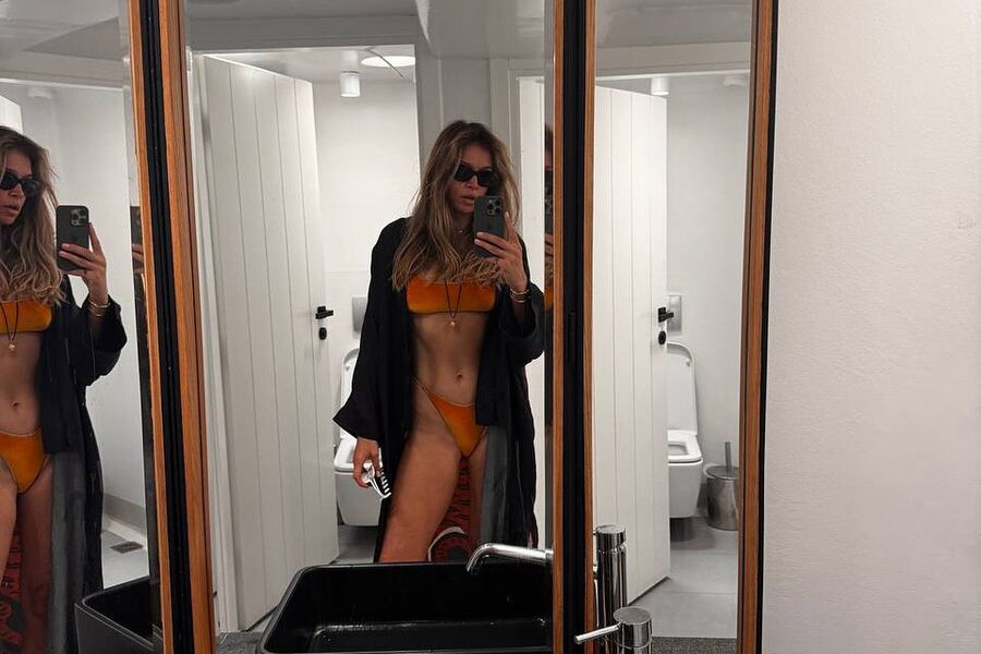 43-летняя Вера Брежнева стояла перед зеркалом в оранжевом бикини, которое дополнила черной накидкой и солнцезащитными очками. Певица также надела цепочку с кулоном и золотые браслеты. Поп-исполнительница была запечатлена с распущенными волосами и без макияжа.