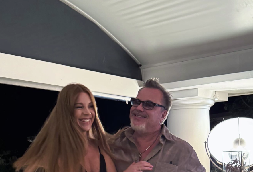 43-летняя Наталья Подольская предстала перед камерой в черном полупрозрачном платье с глубоким декольте и золотистых босоножках на каблуках. Певица позировала с распущенными волосами и макияжем. 57-летний Владимир Пресняков предпочел серо-коричневую рубашку, черные шорты, очки и лоферы. Артист обнимал улыбающуюся супругу.