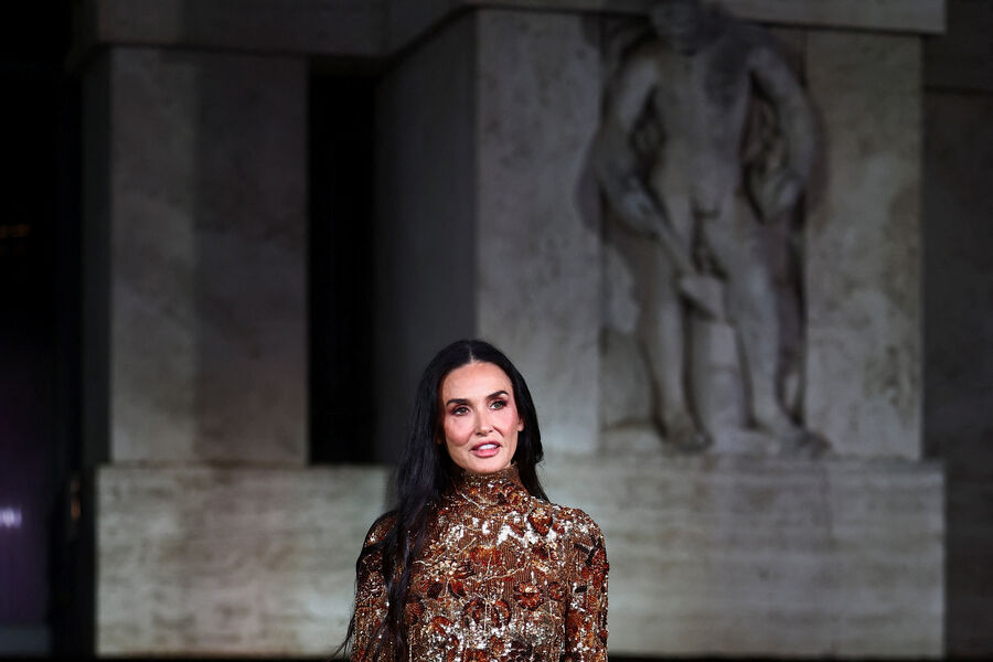 62-летняя Деми Мур стала гостьей премьеры короткометражного фильма Gucci, которая прошла в рамках Недели моды в Милане. Актриса позировала перед фотографами в медном макси-платье, украшенном пайетками. Артистка также надела массивные кольца. Знаменитости уложили волосы и сделали вечерний макияж.
