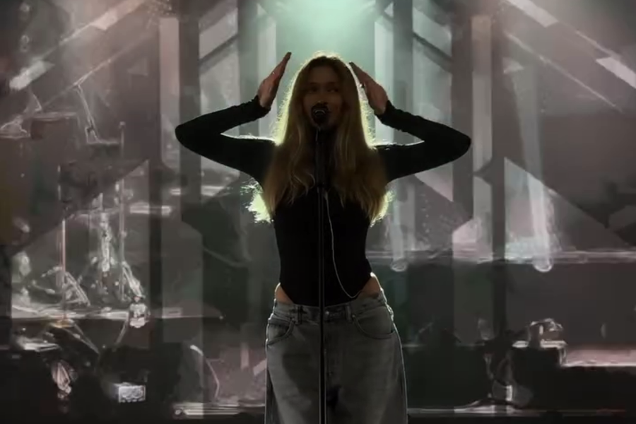 43-летняя Вера Брежнева предстала перед камерой в черном облегающем боди с длинными рукавами, которое дополнила голубыми широкими джинсами и кожаными ботинками. Певица была запечатлена с распущенными волосами и макияжем в нюдовом стиле. Поп-исполнительница пела и танцевала на сцене.