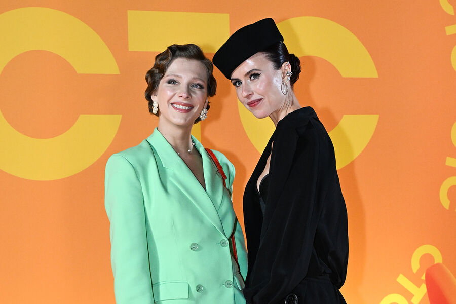 Актрисы Арзамасова и Карпович предпочли для премьеры классические жакеты на голое тело. Арзамасова появилась в зеленом жакете и юбке-карандаш, а Карпович — черных прямых брюках и жакете.