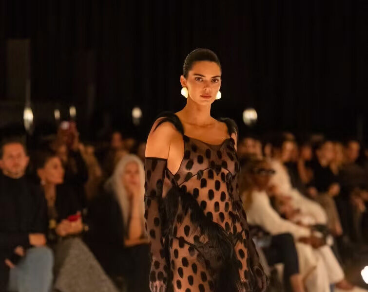 Модель Кендалл Дженнер появилась на показе Schiaparelli в прозрачном платье. Об этом сообщает People.