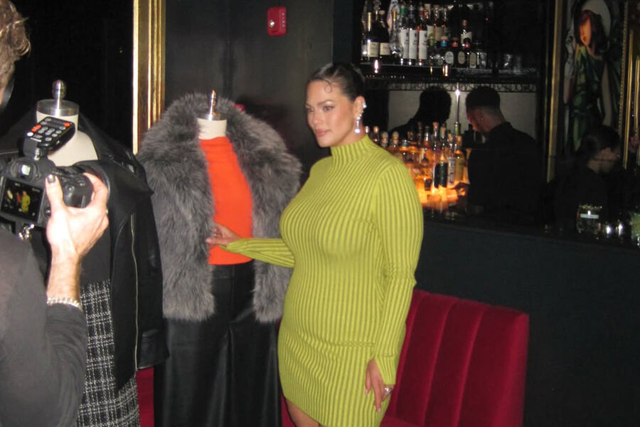 Эшли Грэм снялась в облегающем зеленом мини-платье без нижнего белья. Образ дополнили массивные серьги и золотые босоножки. Волосы ей собрали в высокий хвост и сделали макияж с угольно-черными стрелками.