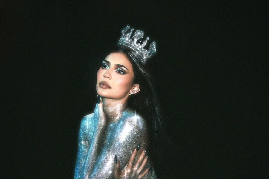28-летняя Кайли Дженнер презентовала новую коллекцию косметических средств своего бренда Kylie Cosmetics. В рекламе звезда реалити-шоу предстала в стрингах без бюстгальтера. Модель также надела босоножки и корону. Бизнесвумен нанесли на все тело блестки и сделали макияж с серебристыми тенями, темно-коричневой помадой и накладными ресницами.