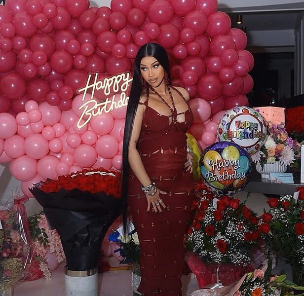 Карди Би показала кадры, сделанные во время празднования ее дня рождения. 33-летняя рэперша выбрала для торжества бордовое облегающее макси-платье с вырезами и декольте, которое дополнила босоножками на каблуках, браслетами, массивными серьгами и кольцами. Исполнительнице уложили распущенные волосы и сделали макияж с коричневыми тенями, черными стрелками и матовой помадой.